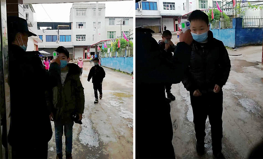 四川省樂至縣也在4月開始了復(fù)課,校門口測量體溫后才能進入校園。中心小學(xué)的老師說,用非接觸式紅外體溫計測量體溫,不需要近距離接觸就能測量,非常安全,學(xué)生們也愿意配合。