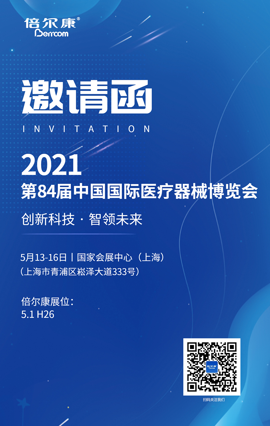 2021年5月13日-16日,以“創(chuàng)新科技 智領(lǐng)未來”為主題的第84屆CMEF中國國際醫(yī)療器械博覽會將于國家會展中心(上海)盛大開幕,在這場產(chǎn)品與學(xué)術(shù)交融的行業(yè)盛宴上,倍爾康將攜非接觸式紅外體溫計在5.1館H26展位精彩亮相!